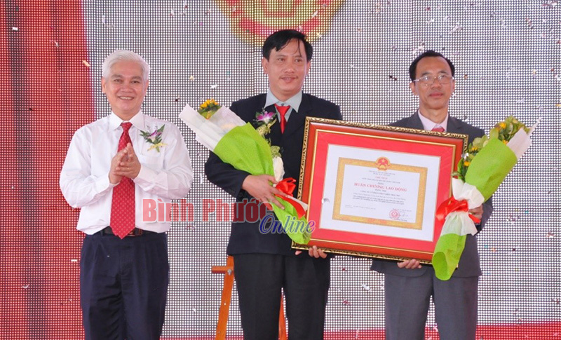Thừa ủy quyền của Chủ tịch nước, Phó bí thư thường trực Tỉnh ủy Nguyễn Văn Lợi gắn và trao Huân chương Lao động hạng Nhất cho tập thể, cán bộ công nhân viên Công ty cổ phần thủy điện Thác Mơ
