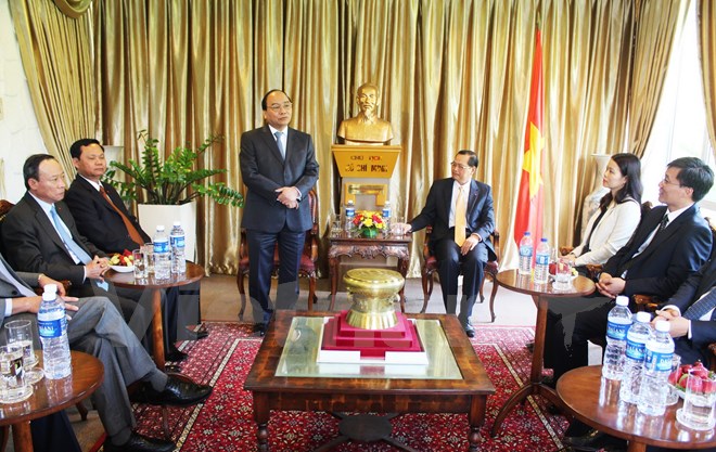 Phó Thủ tướng Nguyễn Xuân Phúc đã thăm và có buổi nói chuyện với cán bộ nhân viên Đại sứ quán Việt NamTại buổi nói chuyện, Phó Thủ tướng Nguyễn Xuân Phúc nhắc lại sự kiện mới đây đã kỷ niệm 40 năm giải phóng miền Nam, thống nhất đất nước.
