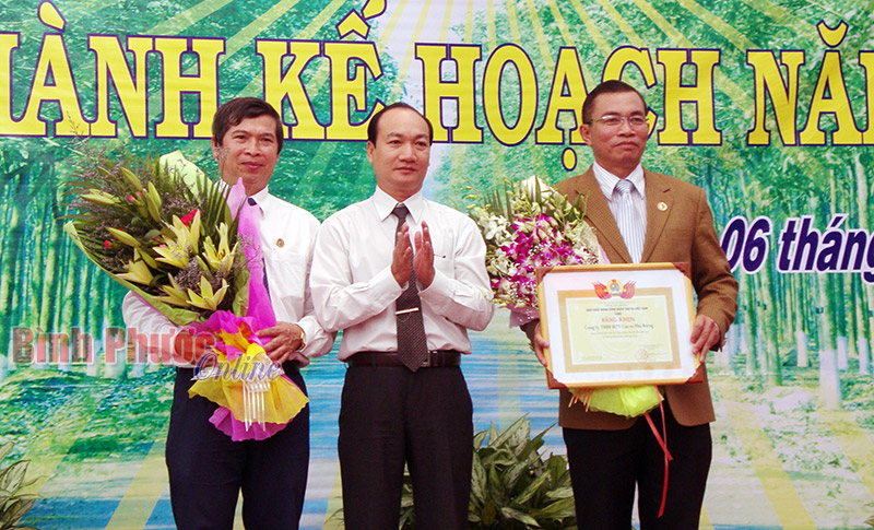Lãnh đạo Công đoàn cao su Việt Nam tặng bằng khen cho tập thể Công ty TNHH MTV cao su Phú Riềng hoàn thành xuất sắc nhiệm vụ năm 2012