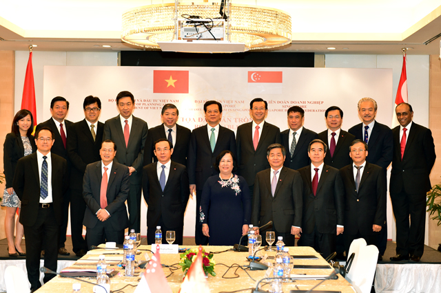 Thủ tướng Nguyễn Tấn Dũng cho biết, thời gian qua, quan hệ Đối tác chiến lược Việt Nam- Singapore có những bước phát triển hết sức mạnh mẽ trên các lĩnh vực, đặc biệt trong lĩnh vực kinh tế, thương mại, đầu tư,… Singapore luôn là 1 trong những đối tác kinh tế hàng đầu của Việt Nam; kim ngạch thương mại hai chiều Việt Nam- Singapore tăng mạnh trong những năm gần đây, năm 2014 đạt gần 10 tỷ USD. Đầu tư của Singapore vào Việt Nam cũng liên tục tăng, Singapore hiện có trên 1.400 dự án đầu tư vào Việt Nam còn hiệu lực với tổng vốn đầu tư trên 33 tỷ USD. Các Khu Công nghiệp Việt Nam- Singapore (VSIP) là biểu tượng sinh động cho sự hợp tác tốt đẹp, hiệu quả của Singapore vào Việt Nam.