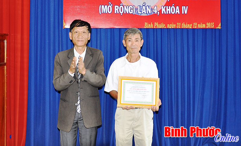 Ông Trần Văn Phụng, Chủ tịch Liên minh HTX tỉnh Bình Phước trao giấy chứng nhận thành lập tổ hợp tác nuôi trồng thủy sản