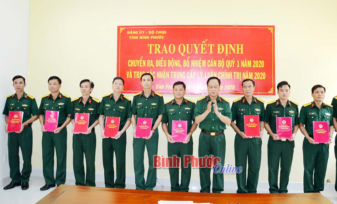 Trước đó, Bộ tư lệnh Quân khu 7 đã trao các quyết định bổ nhiệm Đại tá Nguyễn Thanh Bình, Phó chính ủy Bộ CHQS tỉnh Bình Phước giữ chức Chính ủy Bộ CHQS tỉnh Bình Dương; Đại tá Nguyễn Thành Ruân, Chính ủy Đoàn Kinh tế - Quốc phòng 778, Quân khu 7 giữ chức Phó chính ủy Bộ CHQS tỉnh Bình Phước.