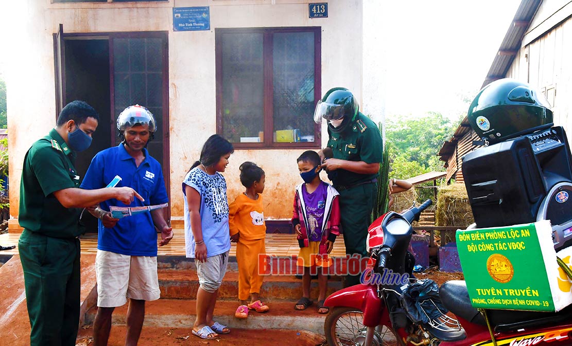 Trung úy Điểu Vương, nhân viên vận động quần chúng Đồn biên phòng Lộc An được chỉ huy đơn vị tin tưởng giao trách nhiệm sử dụng “loa biên phòng” để truyền tải các nội dung phòng dịch đến nhân dân. Anh không chỉ là cán bộ người đồng bào dân tộc thiểu số mà còn là người ở địa phương. “Trên địa bàn xã không có nơi nào mình không biết. Mình kết hợp mở loa đi khắp các khu dân cư để bà con nghe, vừa kết hợp dùng tiếng S’tiêng và tờ rơi để giải thích, hướng dẫn nhân dân cụ thể từng nội dung phòng, chống dịch bệnh” - Trung úy Điểu Vương nói.
