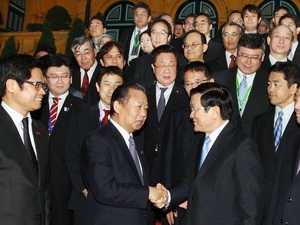 Ngày 27-4, tiếp ông Nikai Toshihiro, Chủ tịch Liên minh Nghị sỹ hữu nghị Nhật-Việt cùng đại diện một số tập đoàn hàng đầu Nhật Bản, Chủ tịch nước Trương Tấn Sang đề nghị hai bên cần tạo những điều kiện thông thoáng hơn nữa để các doanh nghiệp Nhật Bản tiếp tục đầu tư tại Việt Nam.