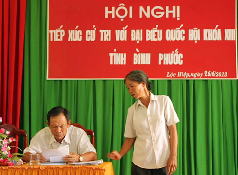 Cử tri 2 xã có 18 kiến nghị gửi gắm đại biểu Quốc hội xem xét, đề nghị Chính phủ, các bộ ngành và tỉnh xem xét, giải quyết: Giải quyết dứt điểm chính sách người có công, trong đó sửa đổi các quy định không phù hợp. Tỉnh công khai tình trạng phá rừng ở Rừng lịch sử Tà Thiết. Đề nghị ngành điện trả lại tiền mượn của dân đầu tư điện hạ thế năm 2000. Giải tỏa đền bù dự án đường Lộc Tấn - Bù Đốp gây bất bình trong nhân dân vì chưa công bằng, không theo trình tự dân chủ công khai với nhân dân. Nhiều cử tri đề nghị UBND tỉnh thu hồi đất tại ngã 3 Lộc Hiệp, Lộc Phú nằm trong quy hoạch trung tâm xã đã cấp cho công ty TNHH Đại Lội sử dụng 50 năm. Nóng nhất là các ý kiến của tiểu thương xung quanh xây dựng, di dời chợ Lộc Hiệp. Cử tri Trần Thị Thu ở ấp Hiệp Thành (xã Lộc Hiệp) cho rằng vấn đề cấp đất ở khoảnh 9, tiểu khu 82, ấp Hiệp Hoàn A (rừng gia tỵ đã thanh lý) có nhiều dấu hiệu lợi dụng chức quyền cấp sai đối tượng và chiếm dụng đất, trong khi những người khai hoang trước khi có rừng gia tỵ trồng năm 1984 không được hưởng quyền lợi theo lời hứa của Lâm trường Bù Đốp là giao lại đất cho dân sau khi thu hoạch rừng trồng.