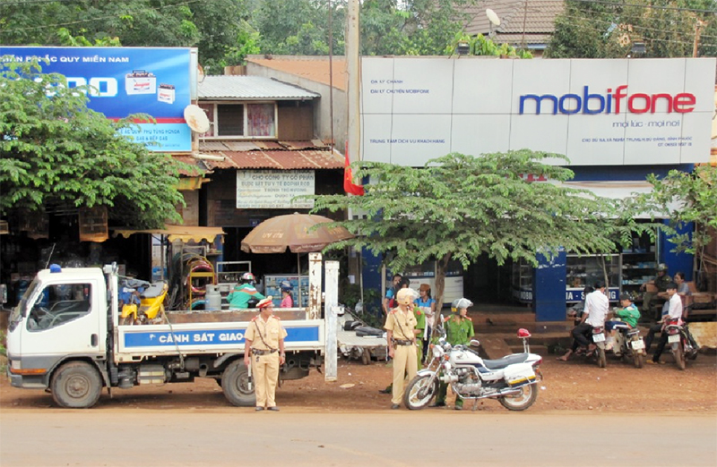 Lực lượng cảnh sát giao thông Công an tỉnh tuần tra, kiểm soát trên quốc lộ 14, đoạn qua huyện Bù Đăng