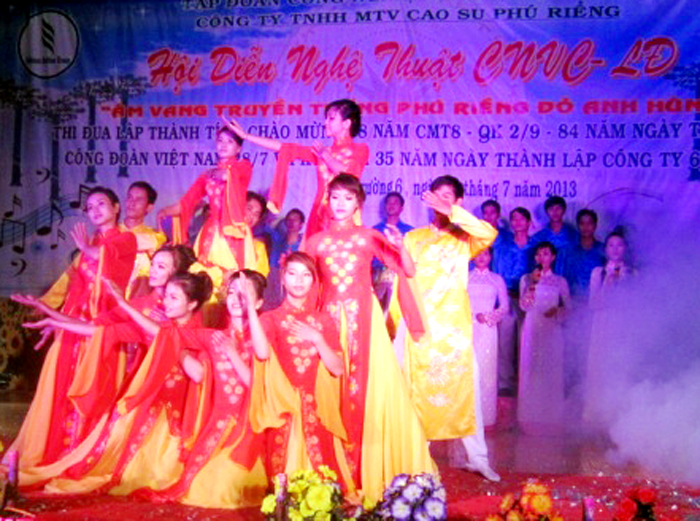 Vừa qua, Nông trường 6, Công ty TNHH MTV Cao su Phú Riềng tổ chức hội diễn văn nghệ công nhân viên chức - lao động với chủ đề: “Âm vang truyền thống Phú Riềng Đỏ anh hùng”. Đây là một trong những hoạt động lập thành tích chào mừng 68 năm Cách mạng tháng Tám và Quốc khánh 2-9; 84 năm ngày thành lập Công đoàn Việt Nam (28-7); 35 năm ngày thành lập công ty (6-9-1979 - 6-9-2013).