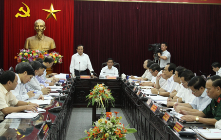 | Đồng chí Phạm Quang Nghị phát biểu tại buổi làm việc với Ban thường vụ Tỉnh uỷ Thái Bình. |