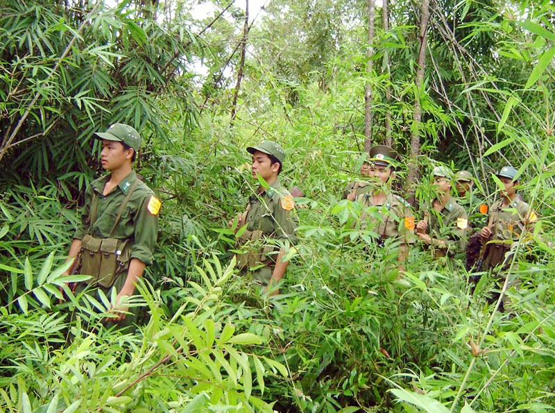 Cán bộ, chiến sĩ biên phòng tuần tra bảo vệ rừng