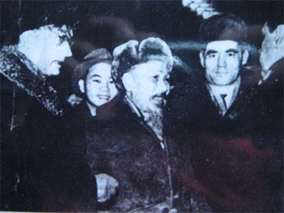 Các đồng chí lãnh đạo Liên Xô đón Bác Hồ ngày 5-7-1961. (Tác giả bài báo ở bên trái, phía sau Bác) |