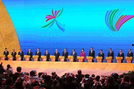 | Các nhà lãnh đạo ASEAN tại lễ khai mạc Hội chợ, Hội nghị thượng đỉnh Thương mại-Đầu tư ASEAN-Trung Quốc |