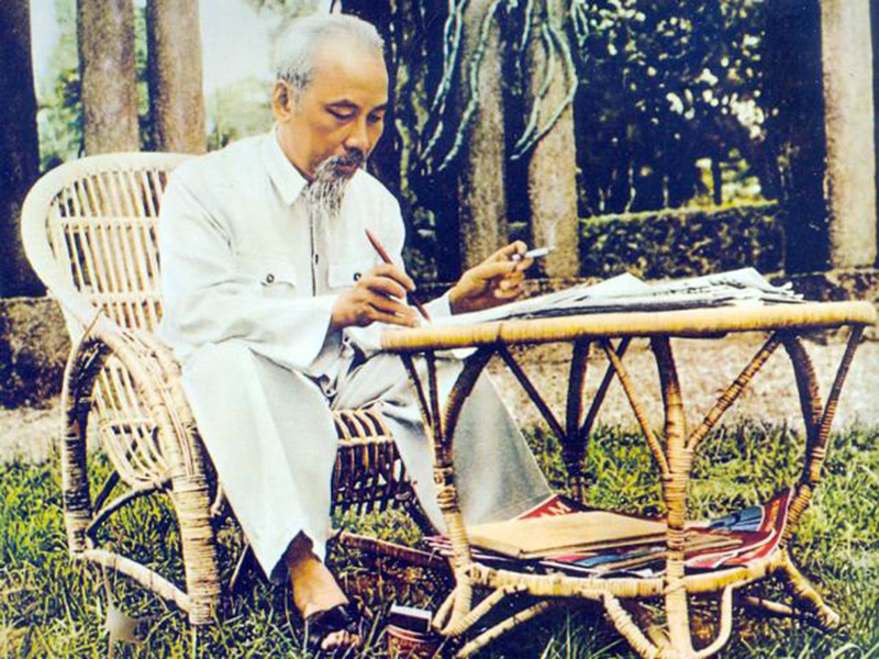 Bác Hồ làm việc trong vườn Phủ Chủ tịch - Ảnh: Tư liệu