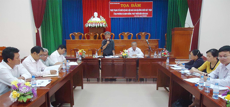 Nhằm nghiên cứu, đề suất giải pháp xây dựng, hoàn thiện tổ chức bộ máy và phát triển đội ngũ cán bộ, công chức MTTQVN đến năm 2020, sáng 18-9, UBMTTQ Việt Nam tỉnh đã tổ chức buổi tọa đàm thực trạng tổ chức bộ máy, đội ngũ cán bộ, công chức mặt trận ở địa phương và định hướng đến năm 2020.