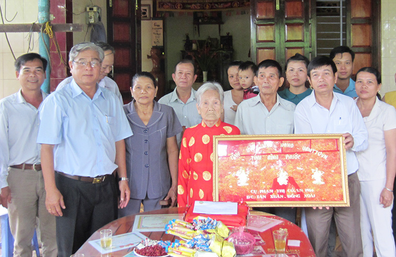 * Ngày 27-9, đoàn cán bộ lãnh đạo huyện Chơn Thành đã đi thăm, tặng quà, chúc thọ các cụ tròn 90 và hơn 100 tuổi tại các xã, thị trấn trong huyện.