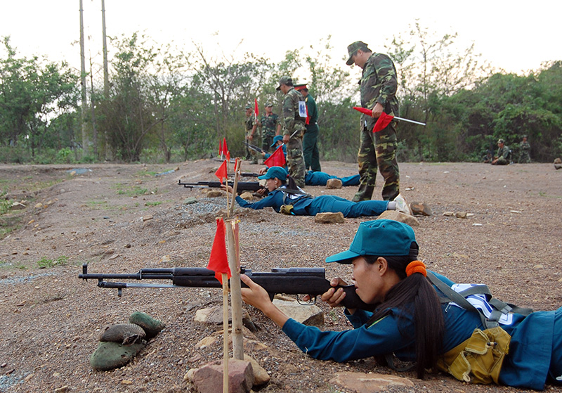 Dân quân nữ xã Thanh Hòa thực hành bắn bài 1 súng CKC