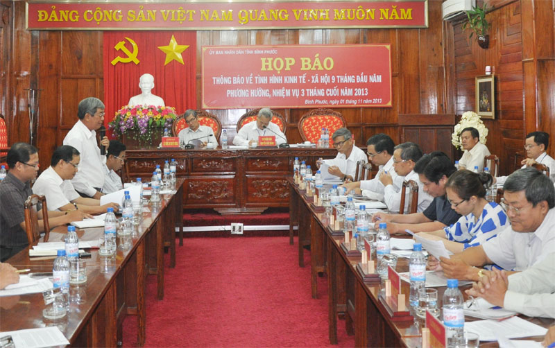 Tại buổi họp báo, các đại biểu đã được nghe Văn phòng UBND tỉnh báo cáo tóm tắt tình hình thực hiện kế hoạch phát triển kinh tế - xã hội, quốc phòng - an ninh trong 9 tháng và những nhiệm vụ chính trong quý 4-2013. Theo đó, trong 9 tháng qua, kinh tế - xã hội của tỉnh tiếp tục phát triển tích cực. Kinh tế tăng trưởng hợp lý, tổng sản phẩm trên địa bàn tăng 9,5%, sản xuất nông nghiệp ổn định, công nghiệp có dấu hiệu phục hồi tăng dần theo từng quý; quốc phòng an ninh được giữ vững, tai nạn giao thông giảm trên cả 3 tiêu chí…