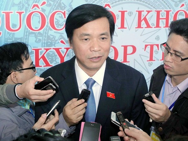 Chủ nhiệm Văn phòng Quốc hội, Trưởng Đoàn thư ký kỳ họp Nguyễn Hạnh Phúc trả lời báo chí trong giờ giải lao.
