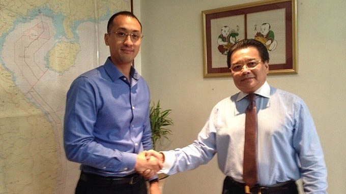 Henry Nguyễn, đại diện gia đình doanh nhân Johnathan Hạnh Nguyễn và Đại sứ Trương Triều Dương tại Đại sứ quán VN tại Manila sáng 14-11