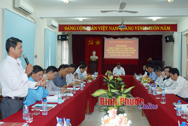Tại tọa đàm, các đại biểu đều khẳng định vấn đề ô nhiễm môi trường đang nóng và nhức nhối trong dư luận xã hội. 16 tham luận đến từ các huyện, thị xã; sở, ngành cấp tỉnh đã thẳng thắn trao đổi, chia sẻ thực trạng và tìm ra giải pháp đối với công tác bảo vệ môi trường trên địa bàn tỉnh hiện nay. Đại diện thị xã Đồng Xoài chia sẻ kinh nghiệm trong công tác phối hợp tham mưu cấp ủy quản lý, kiểm tra và xử lý vi phạm về môi trường đô thị. Đại diện huyện Chơn Thành, huyện Đồng Phú đã nêu lên thực trạng, giải pháp nâng cao hiệu quả công tác bảo vệ môi trường, xử lý ô nhiễm môi trường ở các khu công nghiệp. Huyện Bù Đăng, thị xã Bình Long lại quan tâm chia sẻ giải pháp trong quản lý, kiểm tra và bảo vệ môi trường tại các điểm khai thác đá, đất, cát trên địa bàn. Những huyện có nhiều cơ sở, nhà máy sản xuất, chế biến, trang trại chăn nuôi như Hớn Quản, Phú Riềng lại tập trung phân tích thực trạng và đề xuất kiến nghị giải pháp quản lý, kiểm tra và xử lý chất thải. Các sở Tài nguyên - Môi trường, Khoa học - Công nghệ, Y tế, GD-ĐT cũng chia sẻ những giải pháp đối với công tác bảo vệ môi trường trên địa bàn tỉnh... Qua buổi tọa đàm, các cơ quan tuyên giáo trong tỉnh sẽ có thêm thông tin, tư liệu để định hướng tham mưu thực hiện công tác bảo vệ môi trường trên địa bàn tỉnh.