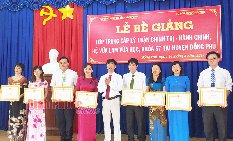Các học viên tiêu biểu được nhận giấy khen của Hiệu trưởng Trường chính trị tỉnhSau gần 2 năm học tập, 100% học viên được hội đồng xét tốt nghiệp Trường chính trị tỉnh công nhận và cấp bằng tốt nghiệp. Trong đó, 1 học viên tốt nghiệp loại giỏi, 19 học viên loại khá, còn lại trung bình.