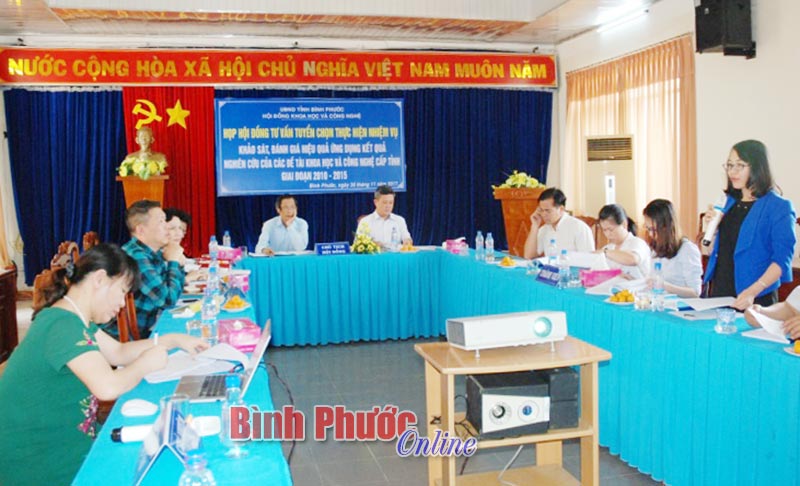 Nhiệm vụ “Khảo sát, đánh giá hiệu quả ứng dụng kết quả nghiên cứu của các đề tài KH-CN cấp tỉnh giai đoạn 2010-2015” do PGS.TS Vũ Thị Minh, Trường đại học Kinh tế quốc dân làm chủ nhiệm. Tại cuộc họp, PGS.TS Vũ Thị Minh thuyết minh, giai đoạn 2010-2015, Bình Phước thực hiện 151 nhiệm vụ nghiên cứu ứng dụng KH-CN, trong đó có 134 đề tài, dự án nghiệm thu, 3 đề tài ngưng thực hiện do không hiệu quả và 14 đề tài đang thực hiện. Phần lớn các đề tài được ứng dụng vào thực tiễn, góp phần nâng cao hiệu quả sản xuất, cải thiện đời sống nhân dân. Tuy nhiên, vẫn còn không ít đề tài, dự án KH-CN đã được nghiệm thu nhưng tính ứng dụng trong thực tế còn chậm.