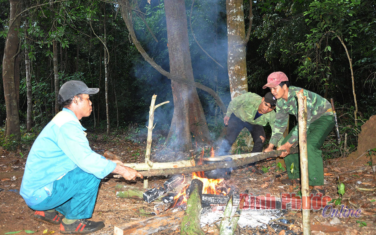 Một ngày cuối tháng 11, chúng tôi theo các thành viên tham gia nhận khoán bảo vệ rừng tại thôn 5, xã Đồng Nai. 6 giờ chiều, trời bắt đầu tối, kèm những cơn mưa phùn nặng hạt. Ăn vội bữa cơm với rau rừng đạm bạc, không ai bảo ai, các thành viên trong tổ tuần tra ban đêm tự chuẩn bị tư trang gồm nước uống, đèn pin, dao, rựa, quần áo bảo hộ và không quên mang theo hộp nhang muỗi để sẵn sàng cho một đêm dài trong rừng. Trước khi xuất phát, tổ trưởng dành ít phút để họp, dặn dò anh em cách thức tuần tra an toàn, phương án xử lý nếu có tình huống xảy ra.