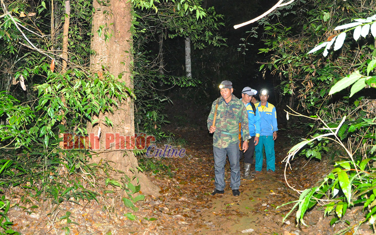 Một buổi tuần tra bảo vệ rừng vào ban đêm của các thành viên cộng đồng nhận khoán thôn 5, xã Đồng Nai, huyện Bù Đăng