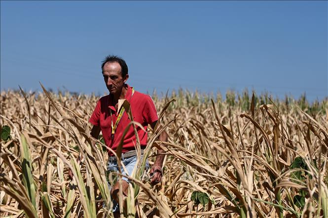 Một cánh đồng ngô bị khô hạn tại Spino d'Adda, Italy ngày 11-7-2022. Ảnh: AFP/TTXVN