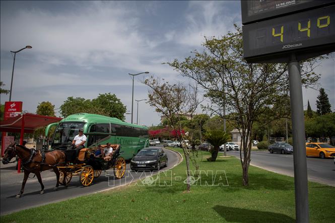 Nhiệt kế ngoài trời chỉ 44 độ C tại Seville, Tây Ban Nha, ngày 12-7-2022. Ảnh: AFP/ TTXVN