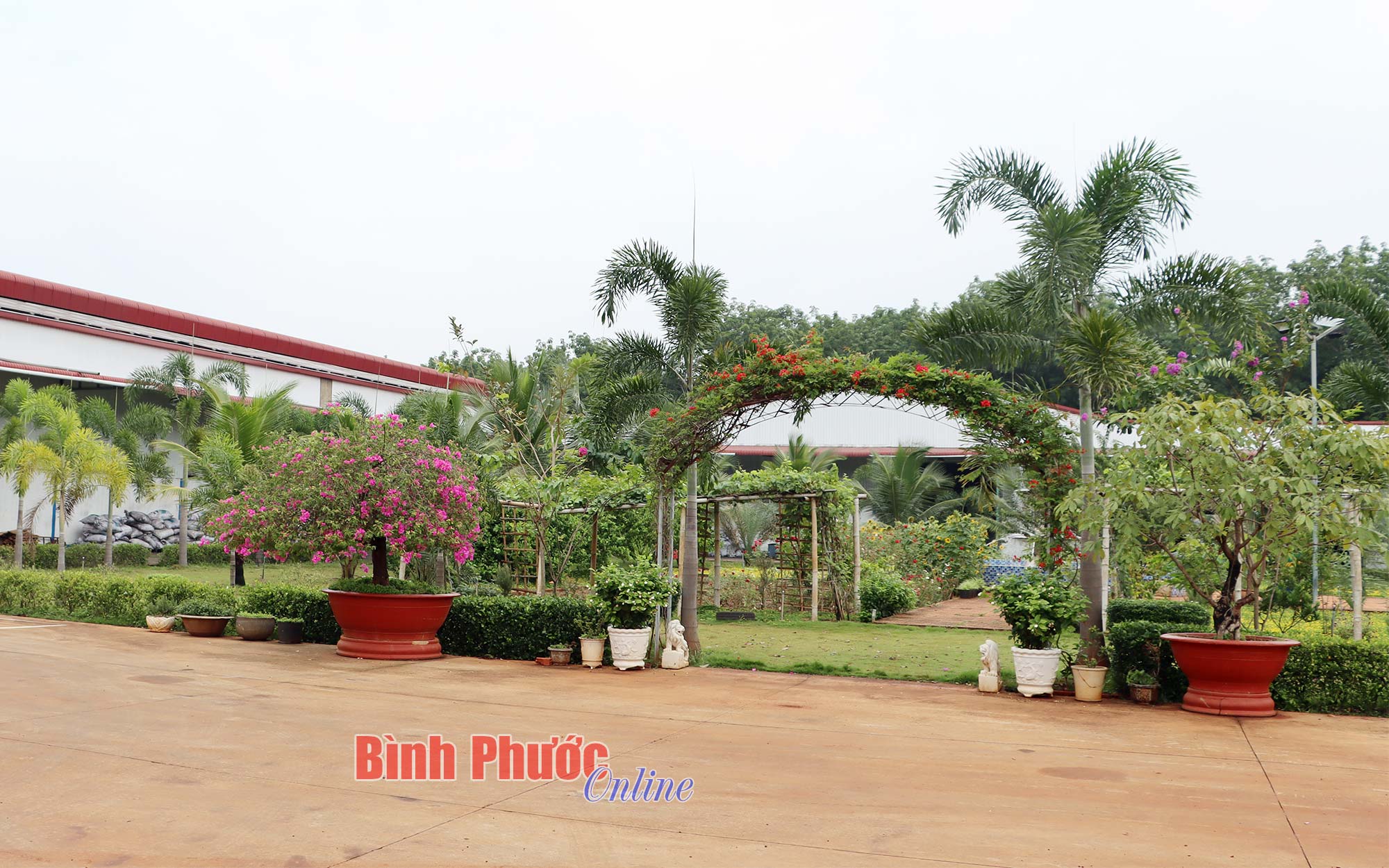 Khuôn viên Công ty TNHH XNK Cao Nguyên Bình Phước với nhiều cây xanh thân thiện với môi trường