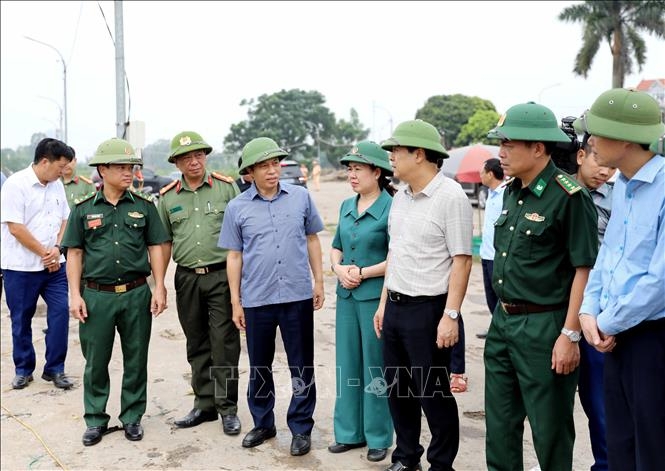 Bí thư Tỉnh ủy Thái Bình Ngô Đông Hải (thứ 3, từ phải sang) kiểm tra công tác phòng, chống bão số 3 tại Cảng cá Tân Sơn, huyện Thái Thụy. Ảnh: Thế Duyệt/TTXVN