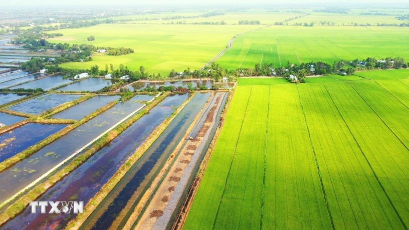 Điều tiết nước ngọt cho vùng sản xuất lúa, điều tiết nước mặn cho vùng lúa tôm tại tỉnh Bạc Liêu. (Ảnh: TTXVN phát)