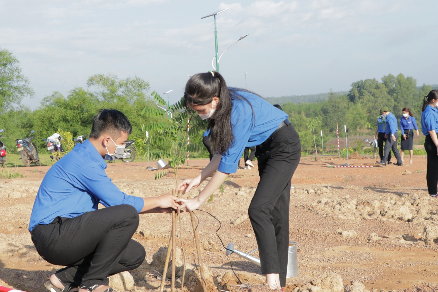 Đoàn viên thanh niên thành phố Đồng Xoài tham gia trồng cây tại lễ phát động trồng cây trên địa bàn thành phố - Ảnh: Nhã Trâm