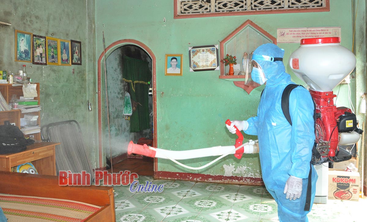 Trạm y tế xã có ý nghĩa hết sức quan trọng trong công tác phòng chống dịch bệnh.Trong ảnh: Cán bộ Trạm Y tế xã Đắk Nhau, huyện Bù Đăng phun khử trùng tại khu vực xuất hiện bệnh bạch hầu vào đầu tháng 8-2020