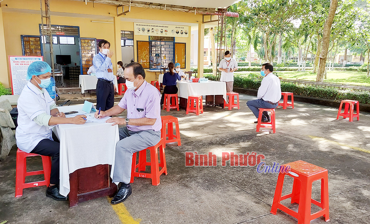 Trung tâm Y tế thị xã Phước Long luôn duy trì tốt quy định 5k của Bộ Y tế khi thực hiện tiêm vắc-xin phòng Covid-19