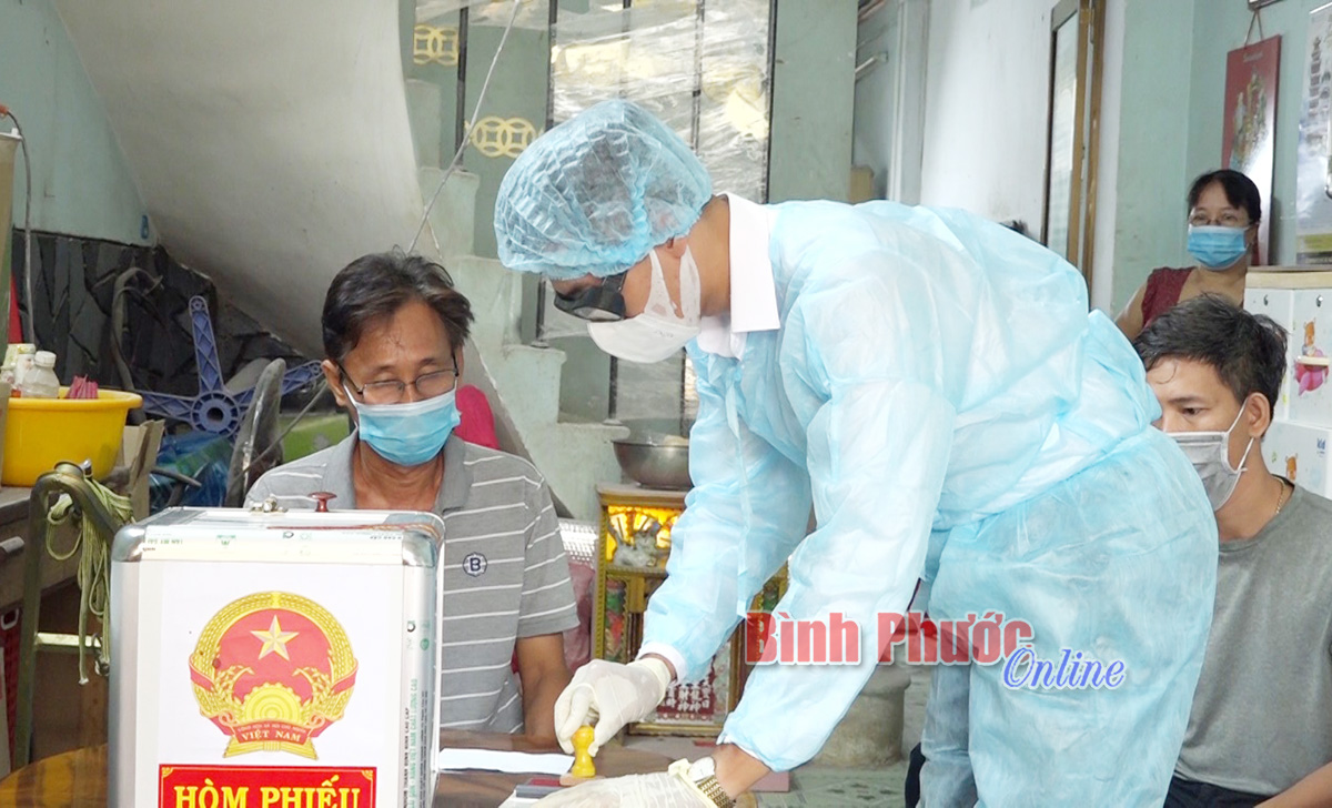 Những người F2, F3 cách ly tại nhà được các tổ bầu cử mang thùng phiếu đến tận nhà để cử tri được thực hiện quyền và nghĩa vụ của mình