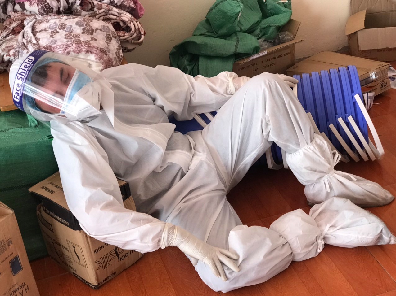 Hình ảnh bác sĩ mệt nhoài, tranh thủ chợp mắt trong ca trực dài những ngày chống dịch COVID-19. Ảnh: BYT