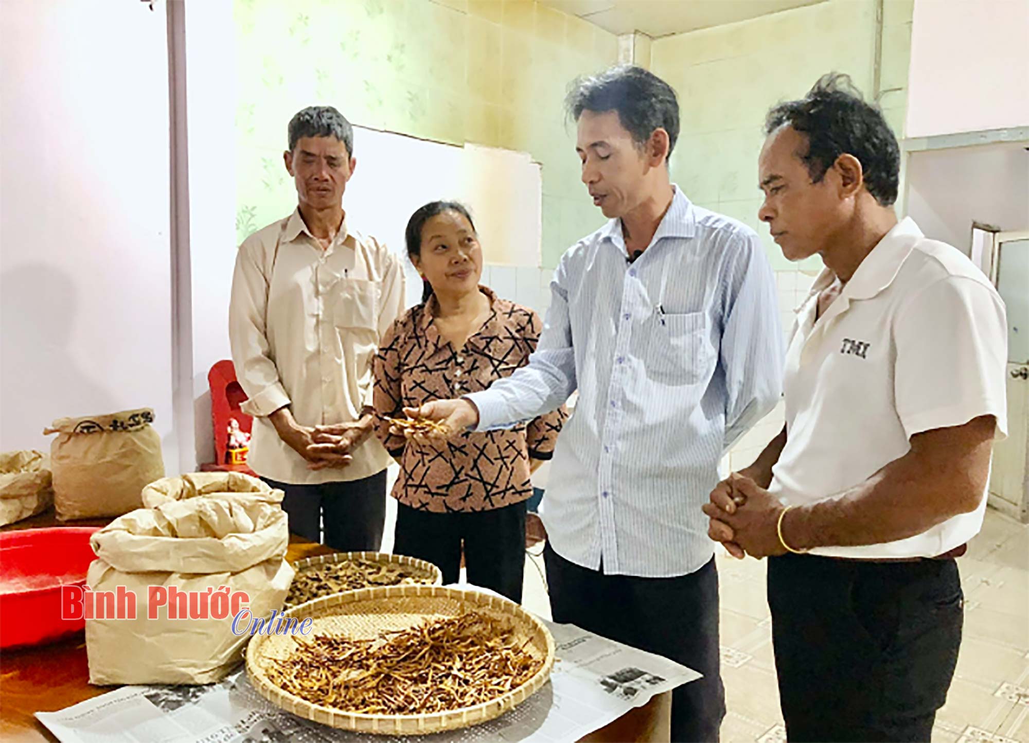 Cử nhân, lương y Phạm Duy Khải (áo xanh) hướng dẫn cách bào chế thuốc đông y cho các lương y ở huyện Bù Đăng