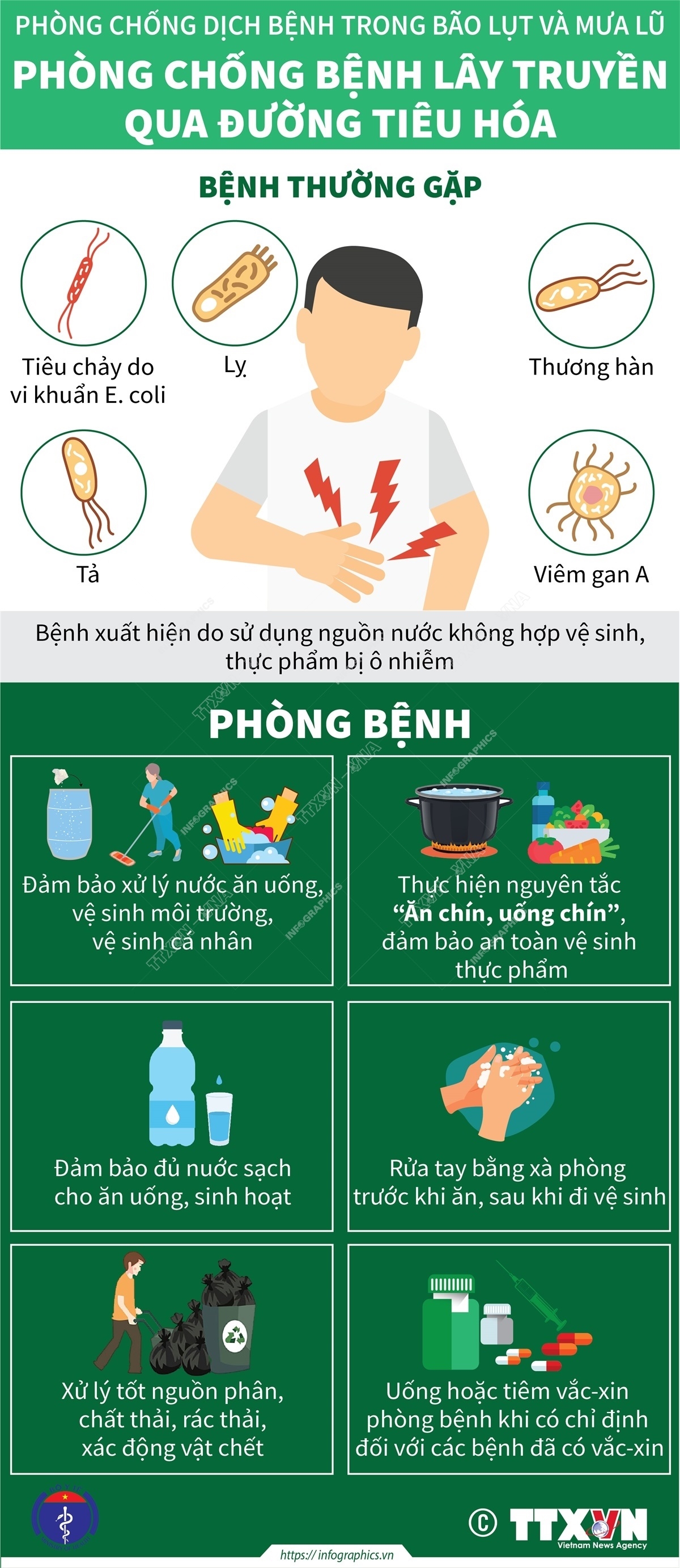 Sau bão lụt và mưa lũ, dịch bệnh rất dễ bùng phát trong cộng đồng. Người dân cần trang bị cho mình những kiến thức về phòng chống các bệnh lây truyền qua đường tiêu hóa.