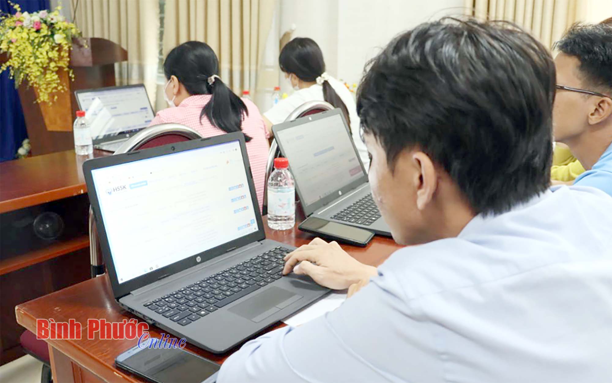 Kỹ thuật viên Viettel Bình Phước hướng dẫn các y, bác sĩ truy cập và sử dụng hồ sơ sức khỏe điện tử bằng máy tính và điện thoại thông minh