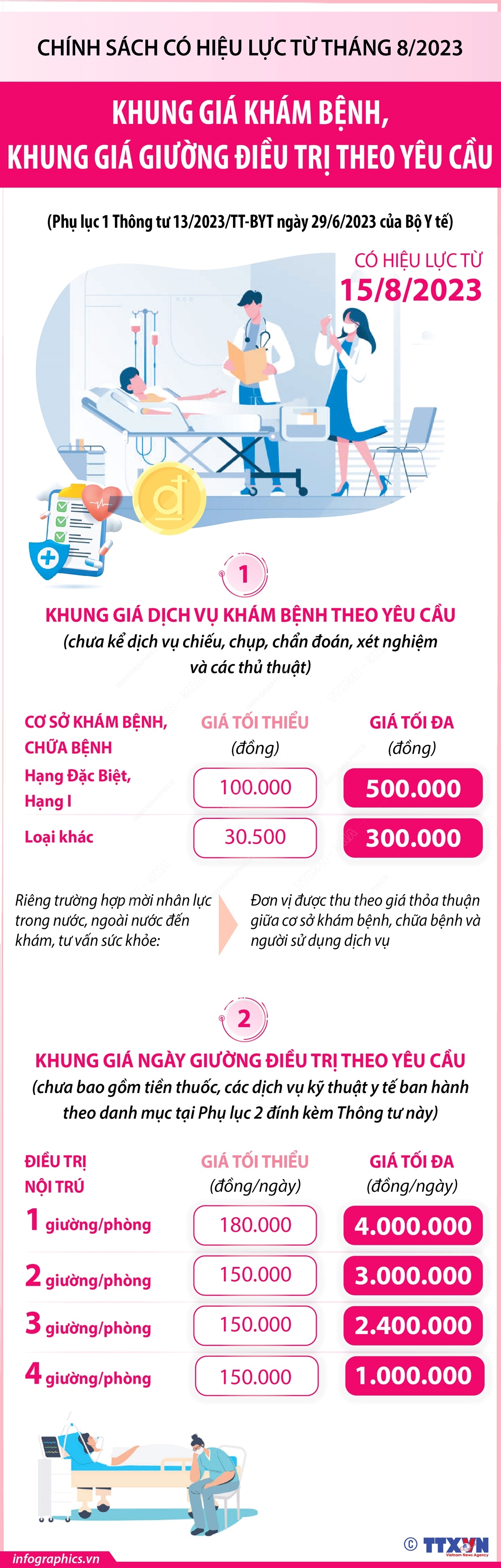 Khung giá khám bệnh, khung giá giường điều trị theo yêu cầu từ 15-8