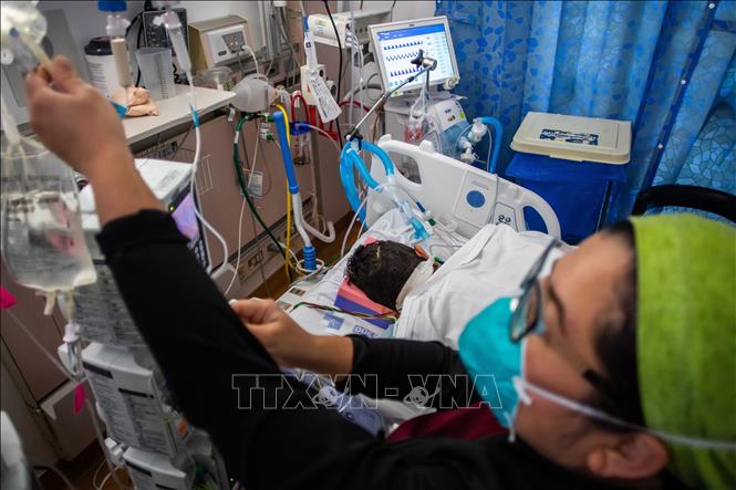Nhân viên y tế điều trị cho bệnh nhân COVID-19 tại bệnh viện ở Tarzana, California, Mỹ. Ảnh: AFP/TTXVN