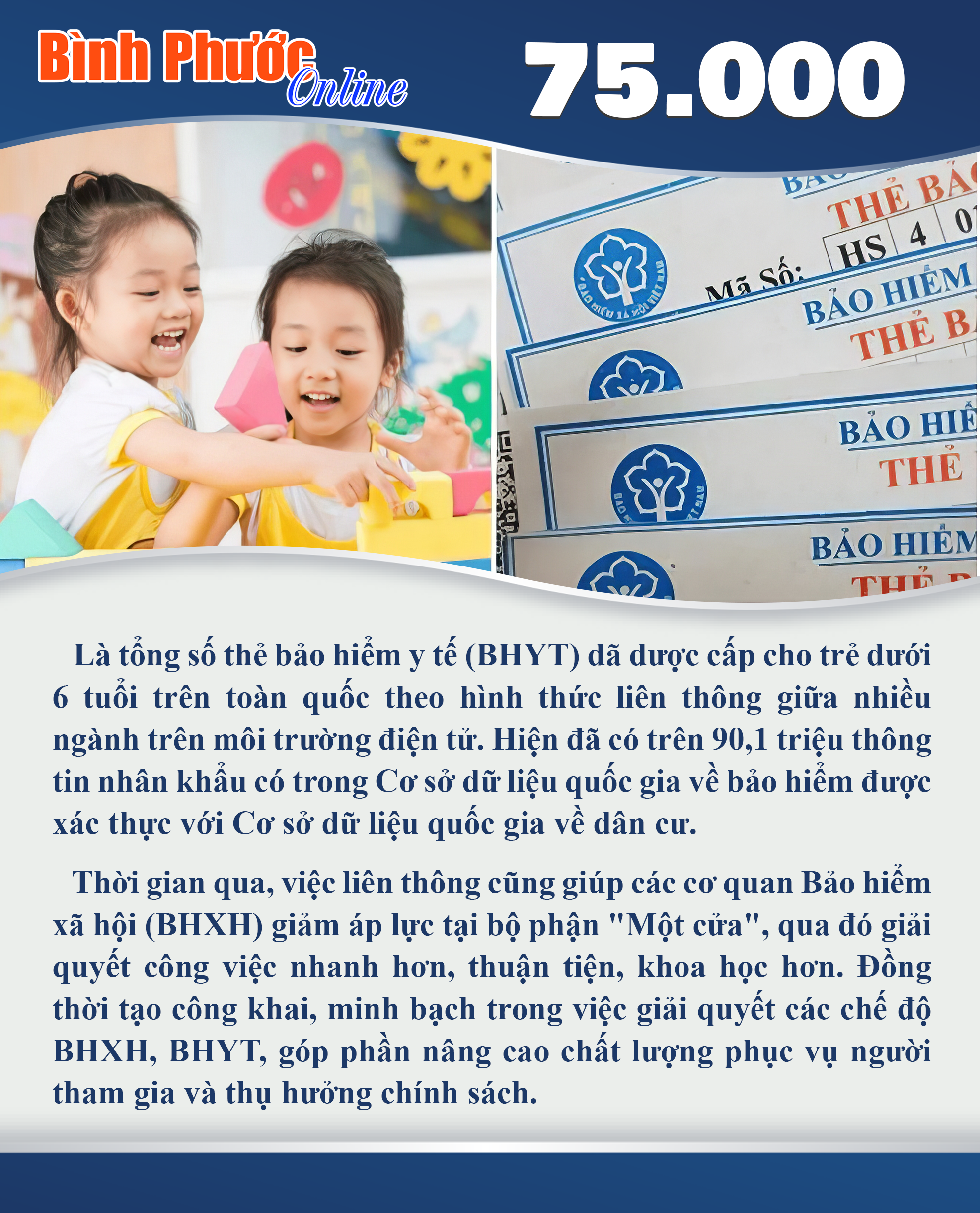 Hơn 75.000 hồ sơ cấp thẻ BHYT cho trẻ em dưới 6 tuổi thực hiện qua dịch vụ công liên thông