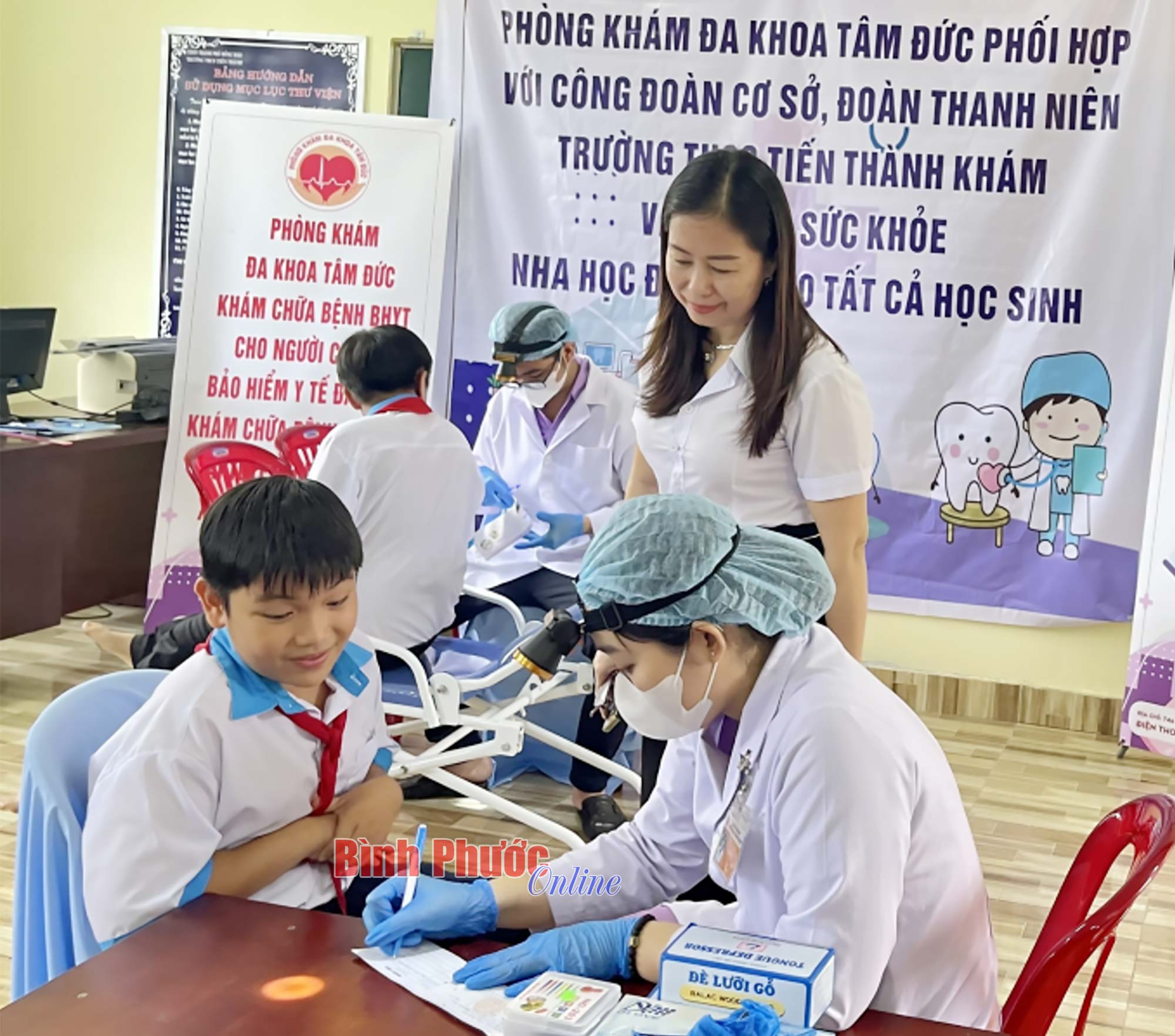 Các y, bác sĩ Phòng khám đa khoa Tâm Đức trực tiếp thăm khám, tư vấn miễn phí răng miệng cho học sinh