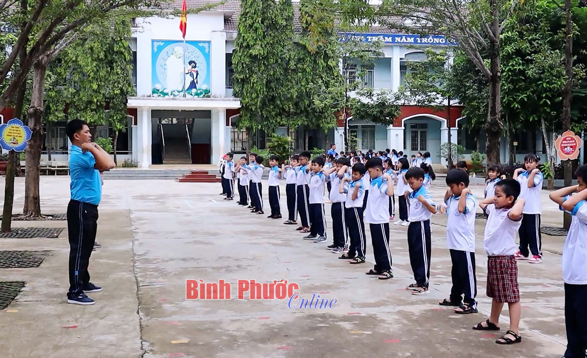Đảm bảo vệ sinh môi trường tại trường học không chỉ giúp học sinh có sức khỏe tốt mà còn giáo dục các em nâng cao ý thức giữ gìn vệ sinh chung. Trong ảnh: Một tiết học thể dục tại Trường tiểu học Tân Phú C