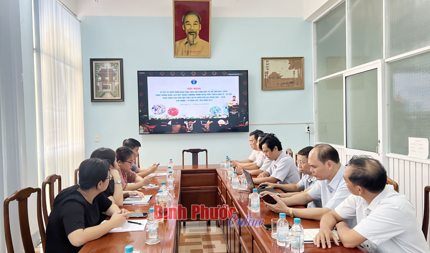 Đại diện các sở, ban, ngành tỉnh tham dự hội nghị tại điểm cầu Bình Phước