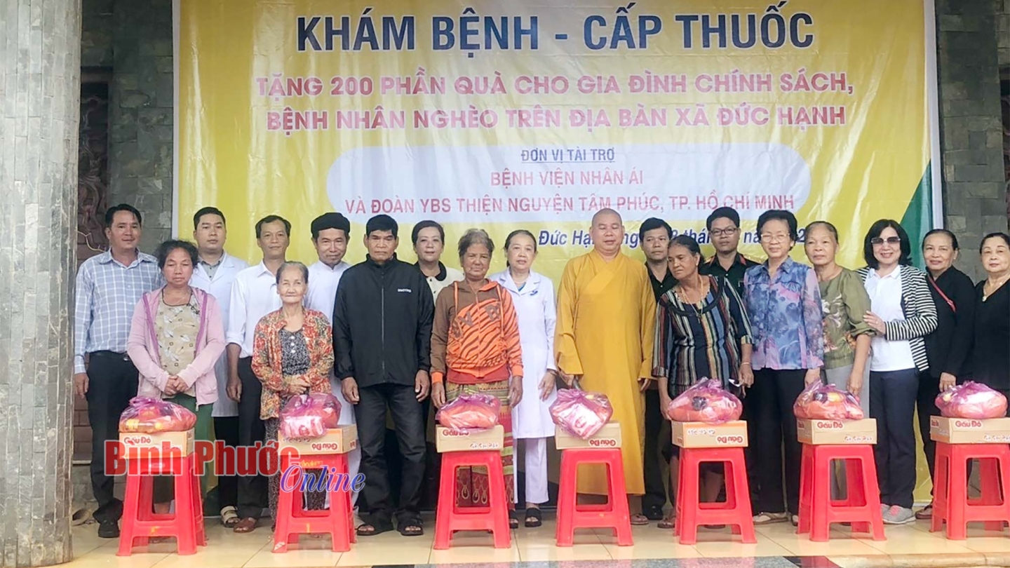 Đại đức Thích Minh Hậu, Trưởng ban Trị sự Giáo hội Phật giáo Việt Nam huyện Bù Gia Mập cho biết: Toàn bộ chi phí khám bệnh, cấp thuốc miễn phí cho người dân do Bệnh viện Nhân Ái và đoàn y, bác sĩ thiện nguyện Tâm Phúc hỗ trợ; 200 phần quà do Hội Nữ kháng chiến tỉnh Bình Dương và Bình Phước trao tặng. Tổng kinh phí đợt thiện nguyện lần này là 120 triệu đồng.