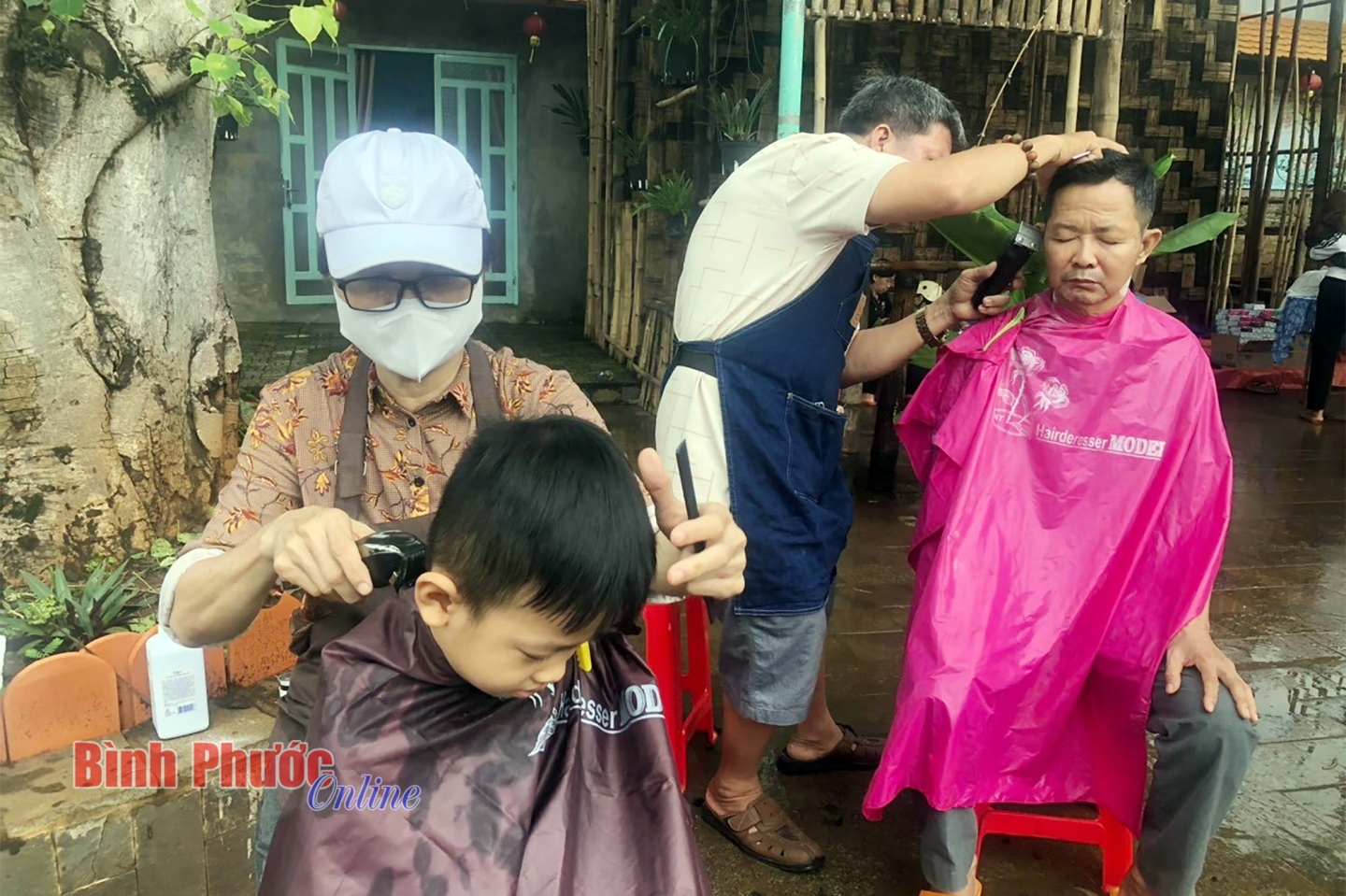 Đoàn thiện nguyện Tâm Phúc, TP. Hồ Chí Minh tổ chức cắt tóc miễn phí cho người dân tại chùa Đức Hạnh, huyện Bù Gia Mập