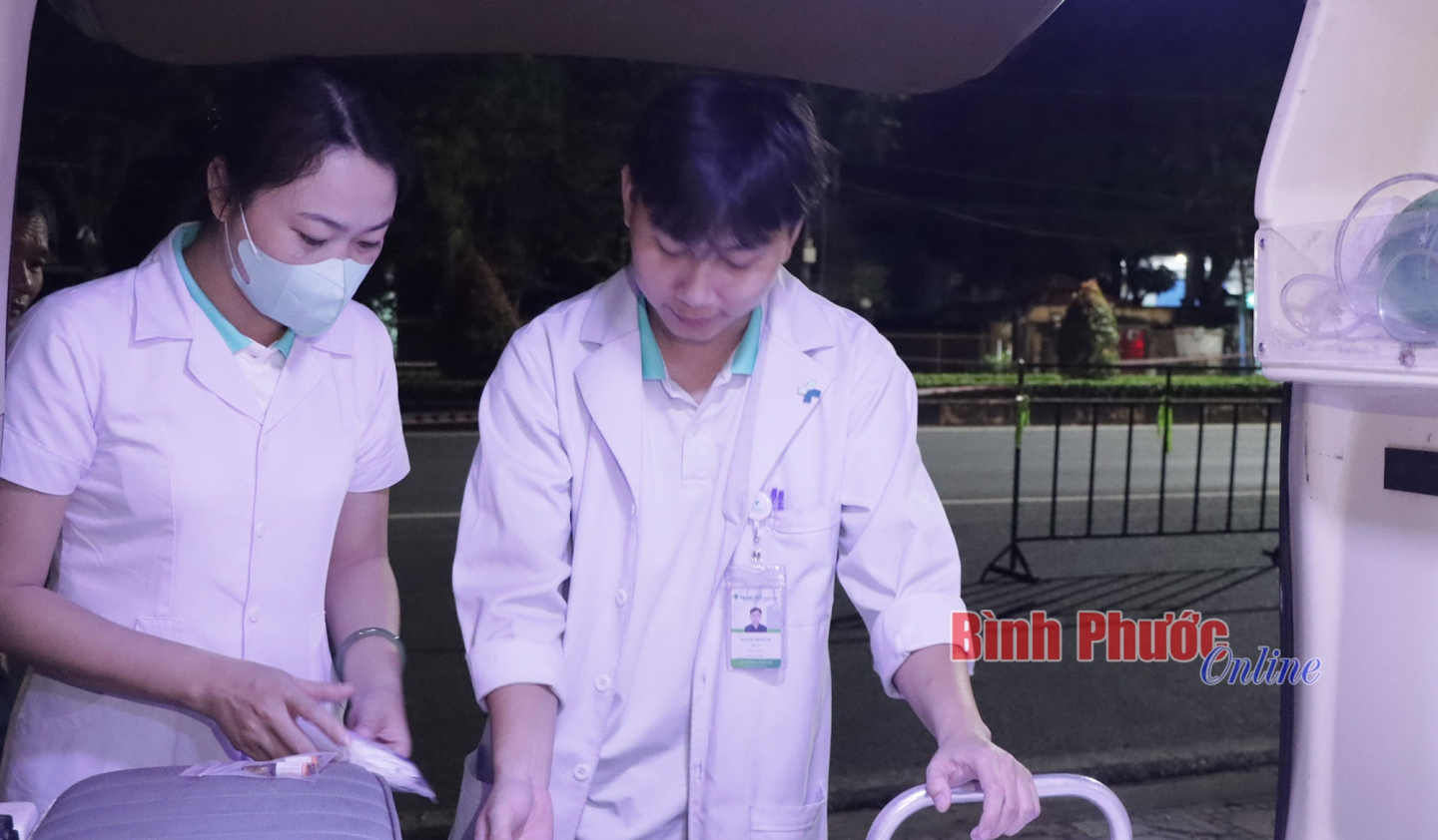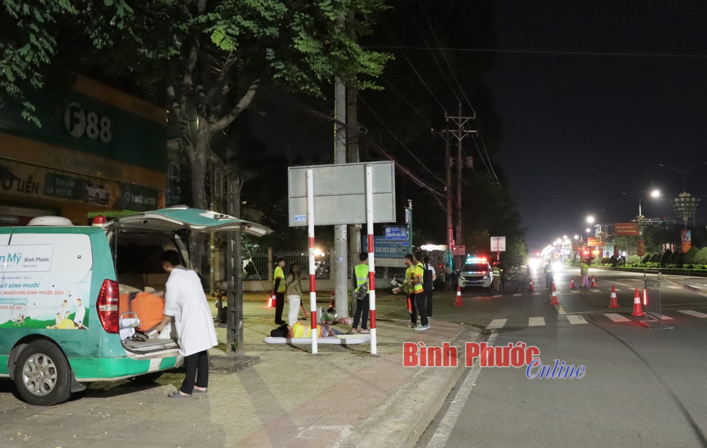 Từ 2 giờ sáng 24-11, cách thời điểm các VĐV thi đấu cự ly 42km xuất phát gần 1 giờ 30 phút, tất cả thành viên thuộc đội ngũ y tế của Bệnh viện Hoàn Mỹ Bình Phước đồng hành với giải chạy đã có mặt ở những địa điểm do Ban tổ chức bố trí tại đường Hồ Xuân Hương, quốc lộ 14 thuộc phường Tân Phú và một điểm tại khu vực gần Khu công nghiệp Đồng Xoài II, xã Tiến Hưng, thành phố Đồng Xoài. Tại mỗi điểm chốt, Bệnh viện Hoàn Mỹ Bình Phước bố trí 1 xe cấp cứu chuyên dụng với 3 nhân sự gồm: 1 bác sĩ, 1 điều dưỡng và 1 lái xe. Ngoài ra còn có các trang thiết bị, vật tư thiết yếu như: Máy sốc điện tim, bộ dụng cụ cố định chi, bộ đặt nội khí quản, bóng ambu, bình ôxy, thuốc và các loại vật tư y tế thiết yếu khác...