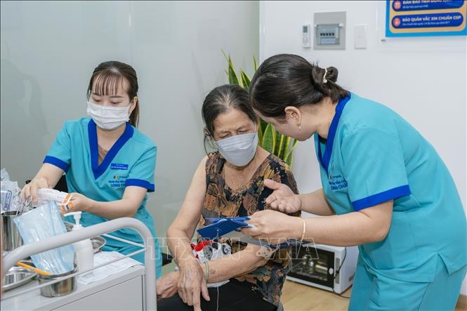Người dân tiêm vaccine phòng cúm tại Trung tâm Tiêm chủng FPT Long Châu. Ảnh: TTXVN phát